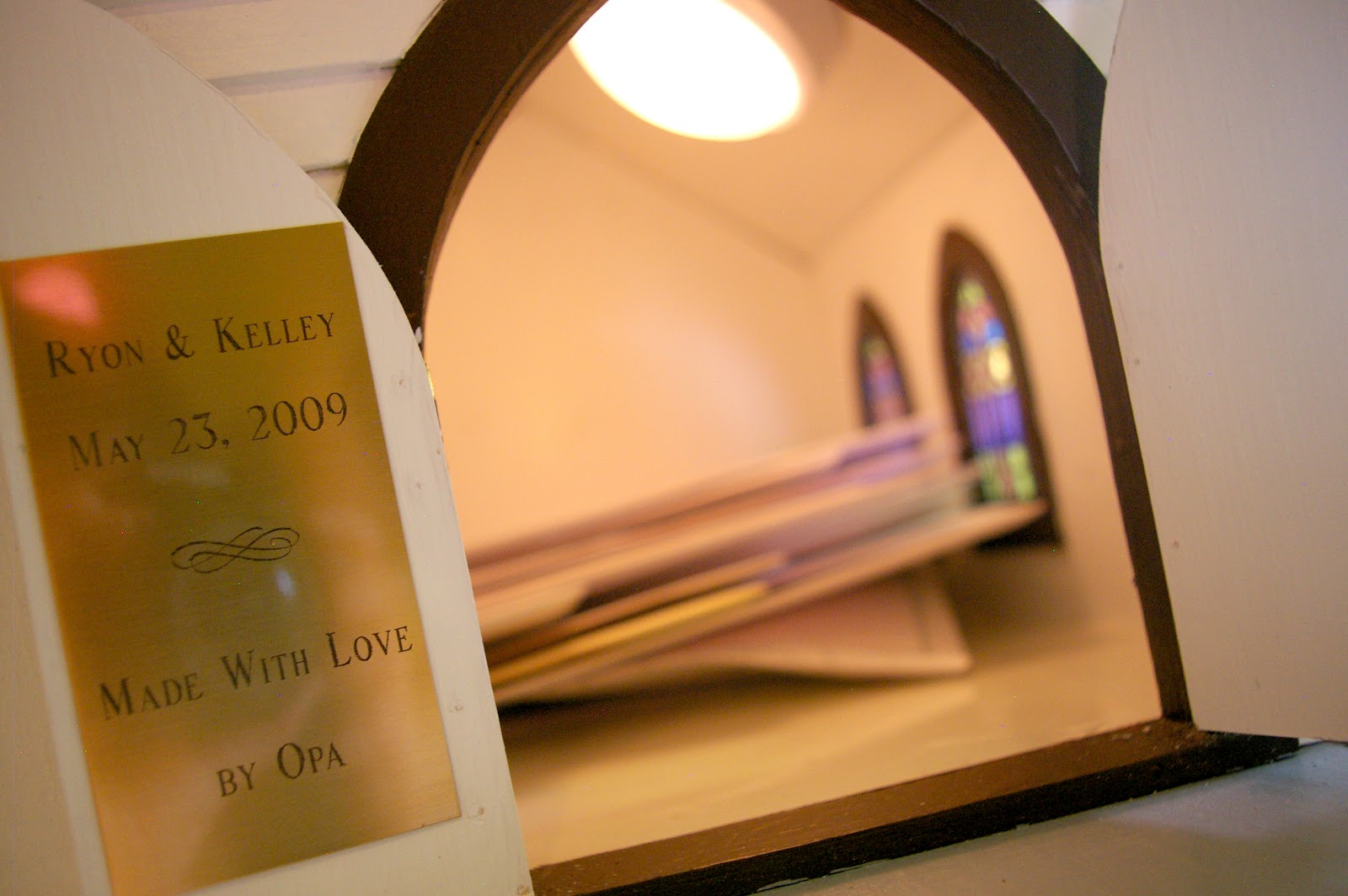 Opa added a plaque with our names and wedding date on the inside. So much love was put into our little church.
