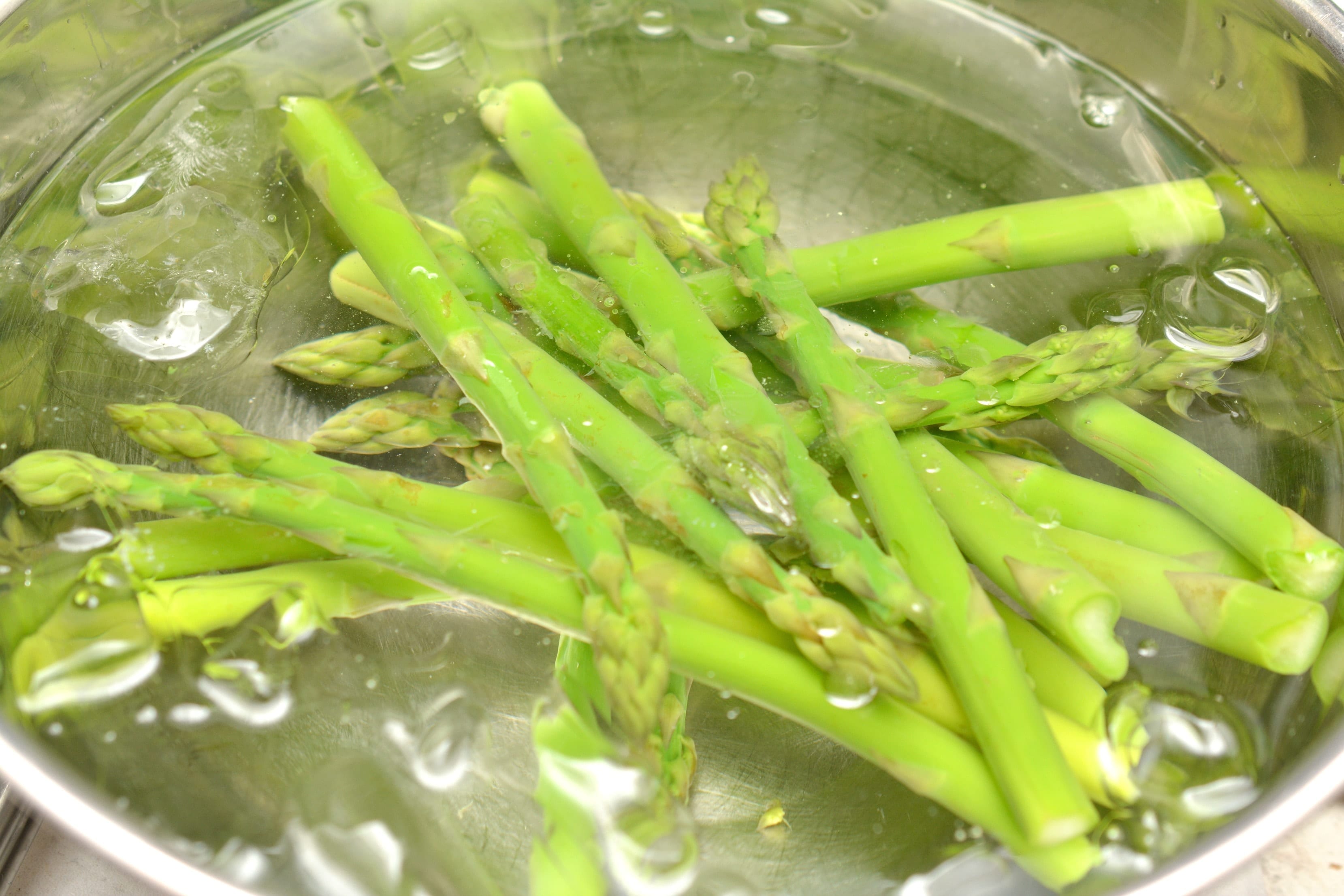 - Immediately place the asparagus into a bath of ice water to stop the cooking.