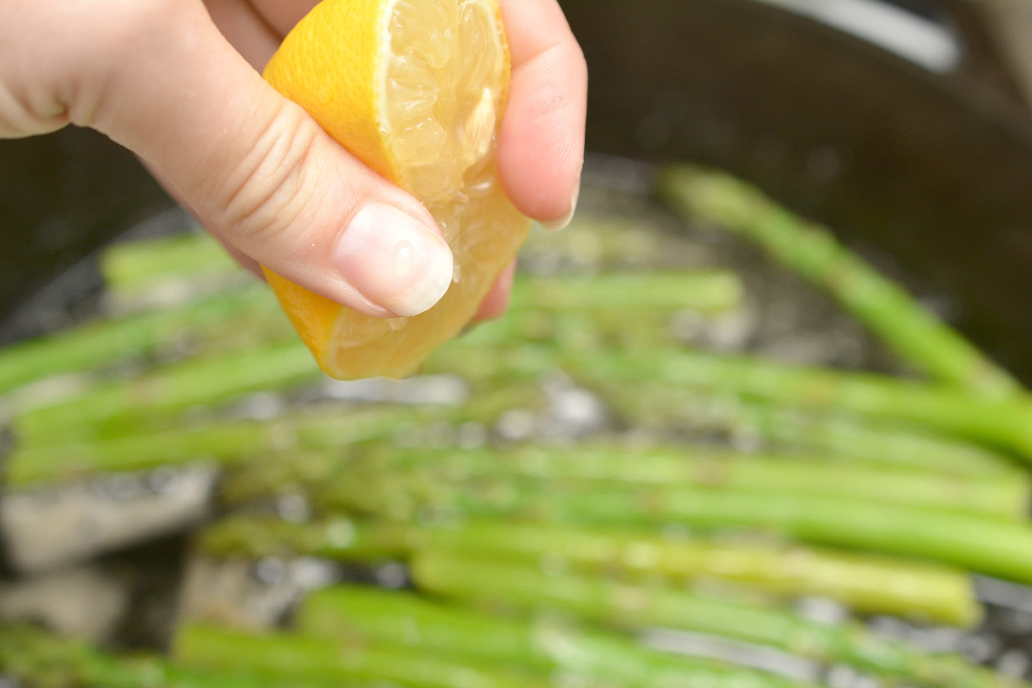 Flavor the asparagus while it sautes by squeezing in the juice from half of a lemon. Add salt and pepper to taste.