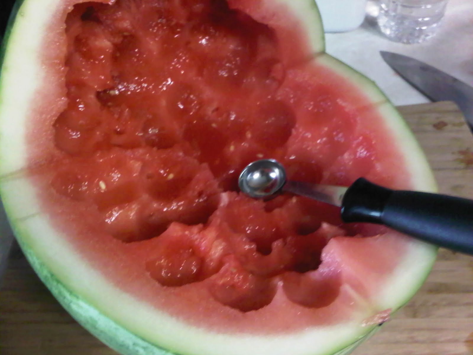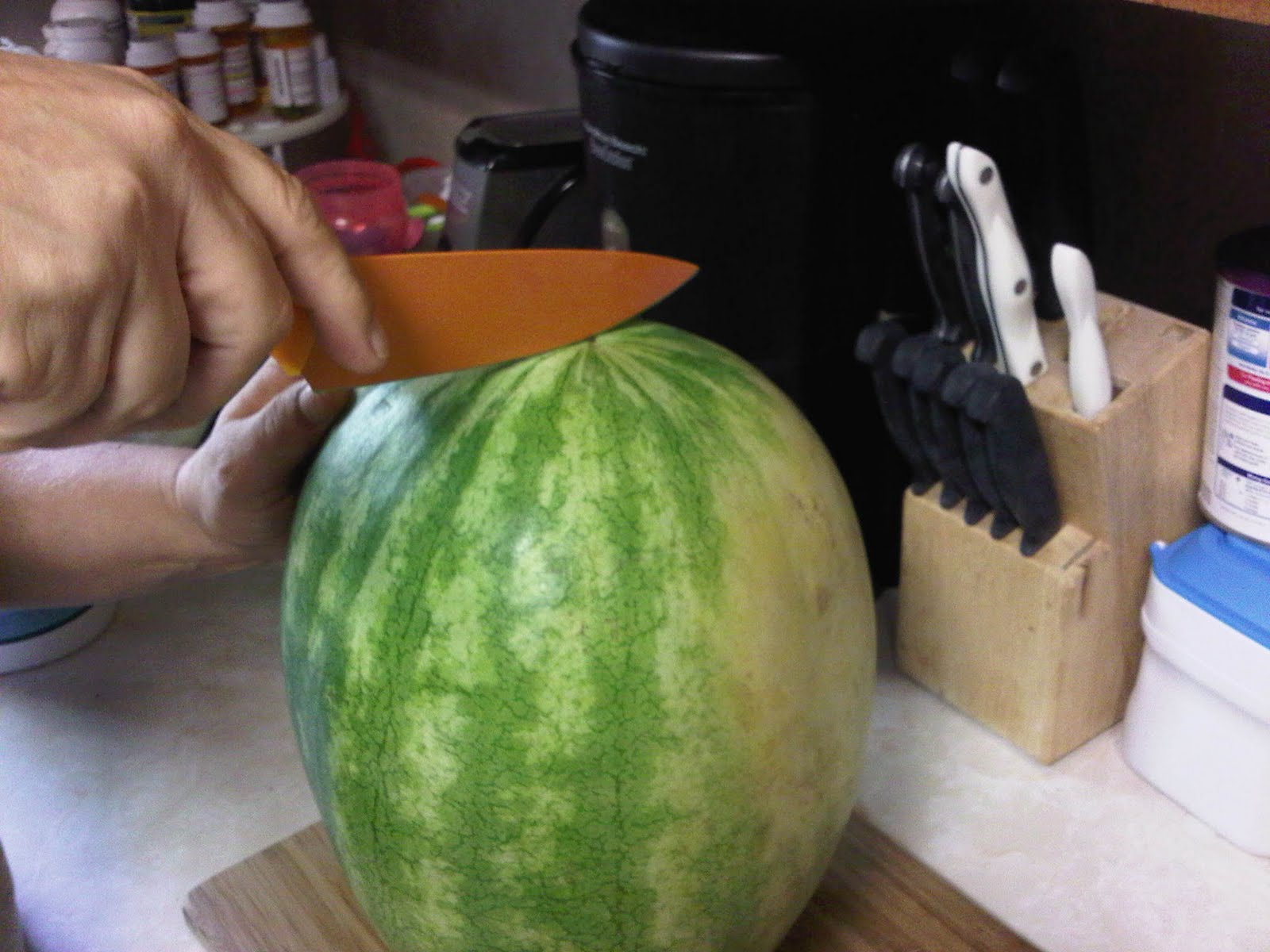 Check the watermelon in half.. but only go half way down.