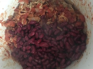 - Add in the diced tomatoes, chicken broth and kidney beans. If using a slow cooker, allow to cook for 2-4 hours on high or 4-6 hours on low. If cooking on the stove top, bring to a boil, reduce heat and allow to simmer for up to an hour.