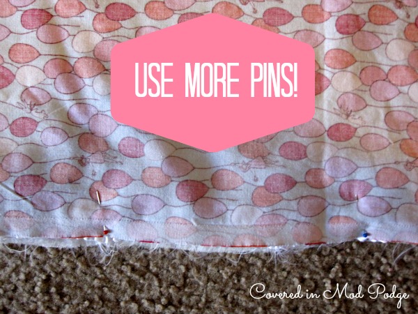 Now its time to really start working with minky. I have called minky some pretty terrible names in my sewing days. I do everything I can not to work with it. However, Pinterest has been my best friend for learning to make my peace with this awful, comfy fabric. The answer? Tons and tons of pins and sewing super, duper slow! Also, you want to sew with the minky on the bottom to take advantage of the feed dogs.
