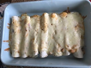 - Repeat process until all your tortillas are filled. Feel free to add more tortillas if you have more meat. Squeeze them in the dish.