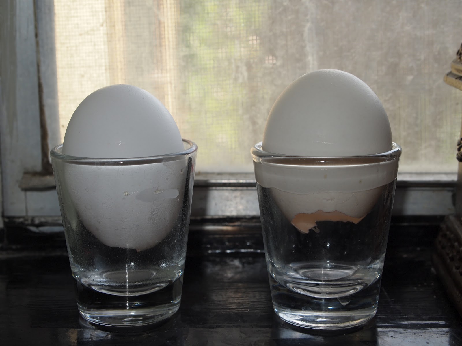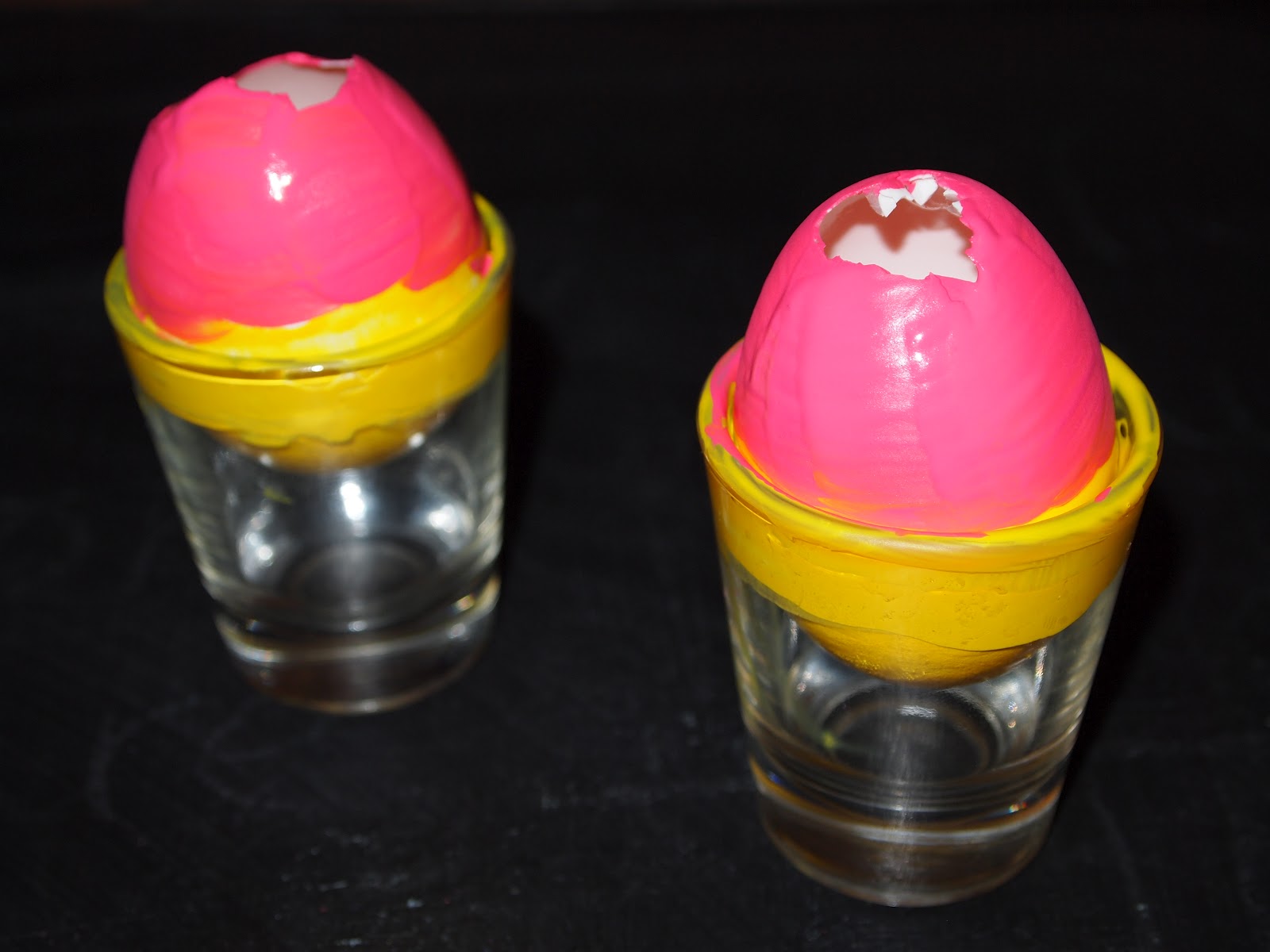 Let your eggs dry for a day or two. (Side note – shot glasses are perfect for holding eggs!)