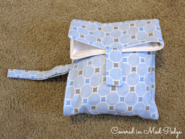 You end up with everything you need for a diaper change on the go. You can use this clutch for quick trips to the store or so daddy doesn’t have to carry around the uber-girly diaper bag.