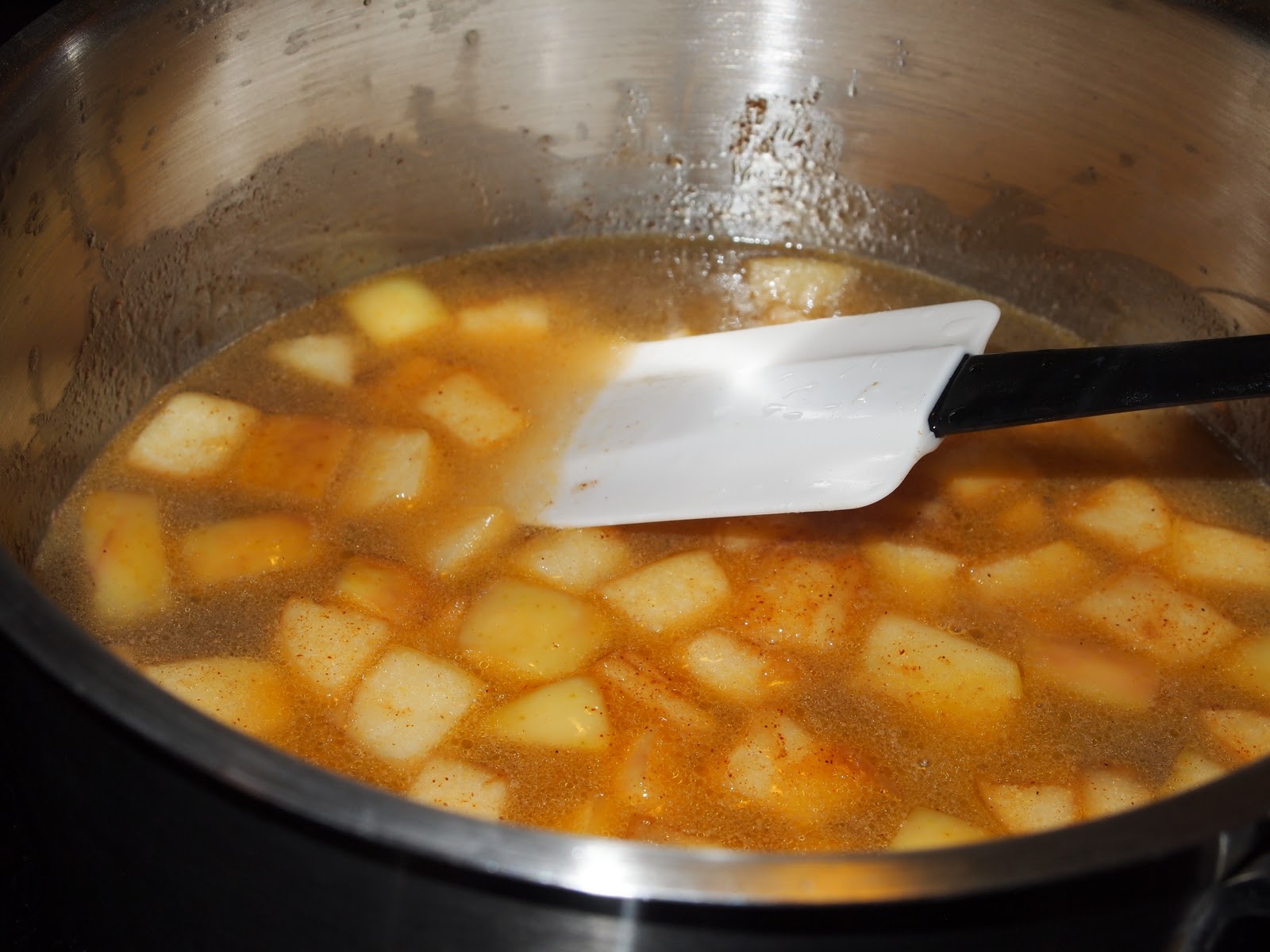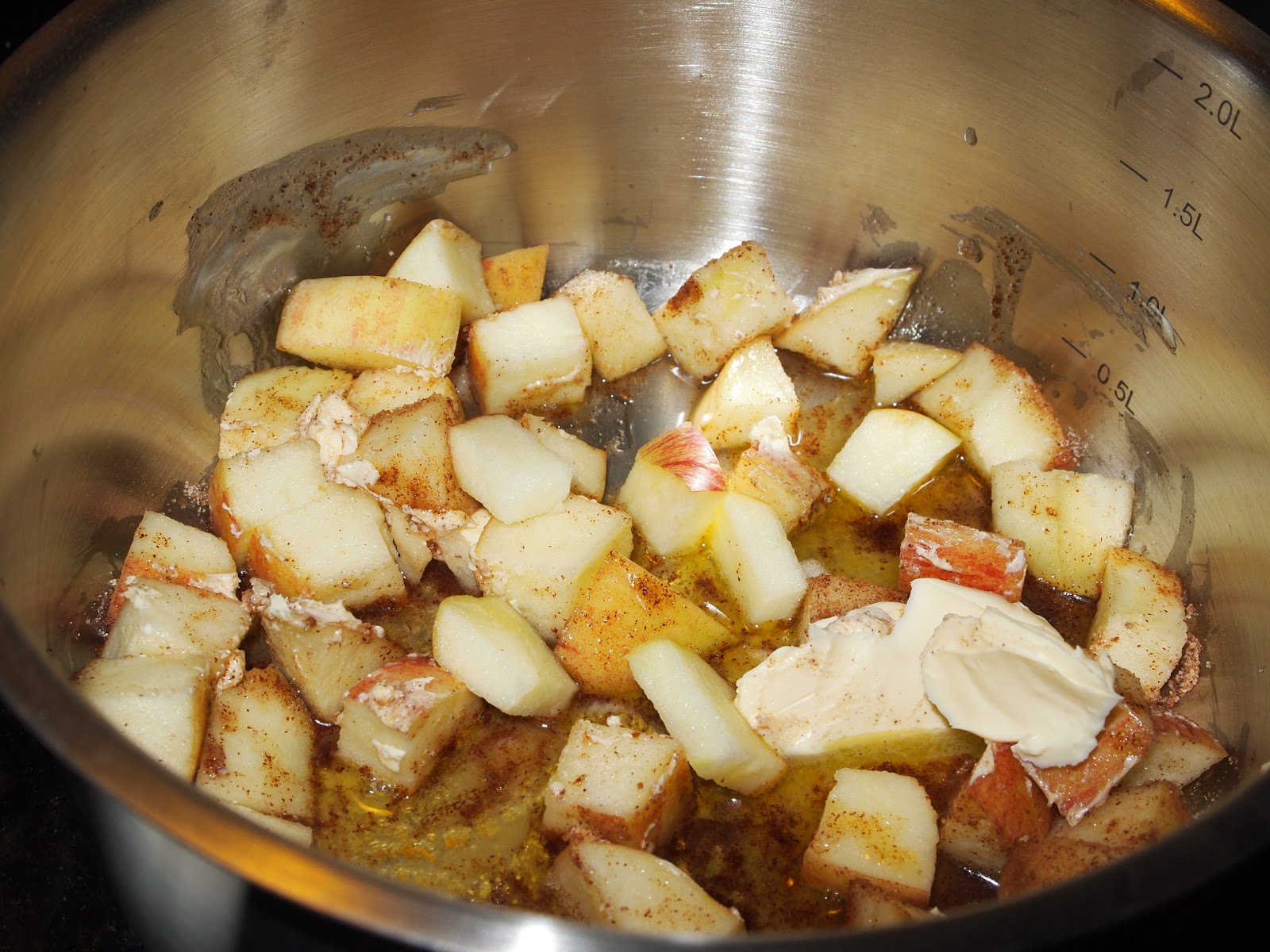 Start by sauteing your apples. I used maybe a tablespoon of butter and some cinnamon sugar. Cook for about 5 minutes or until your apples are soft.