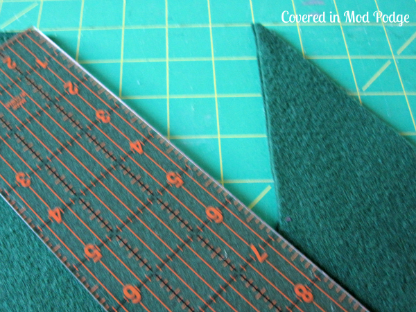 Start out by evening up your green tree felt. Then, cut it to height according to your space {and child’s height}. For me, this was 30 inches.