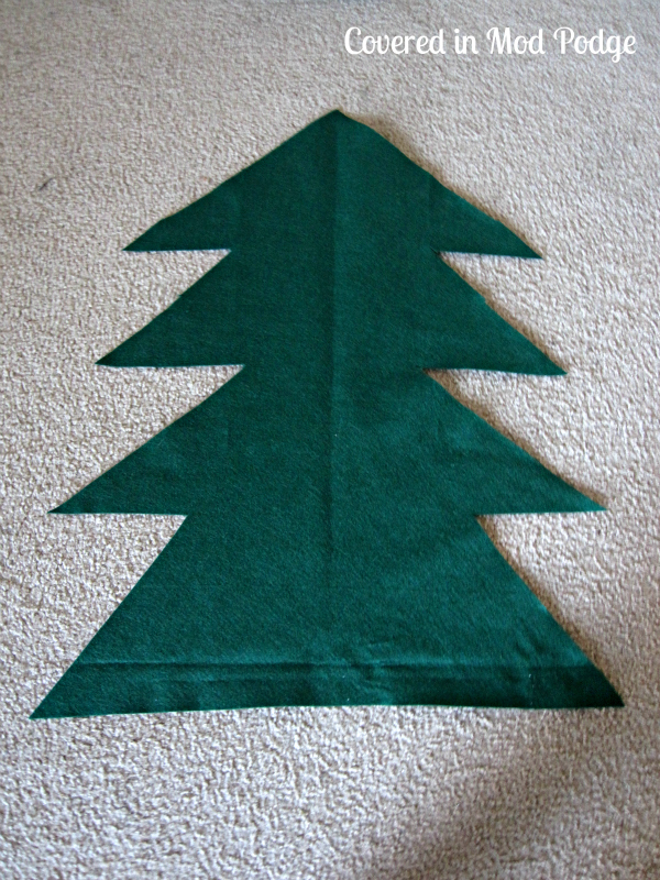 To explain how to cut the tree shape, I’ll give you the dimensions I used. You’ll need to adjust these according to your desired height. It helped me to have a picture of a clip art Christmas tree open while I was cutting.