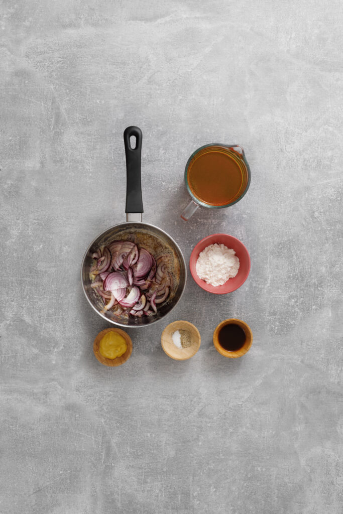 4. Prepare the Gravy: In the same skillet, add butter and sliced onions. Cook over medium heat until the onions are softened and caramelized, about 8-10 minutes.