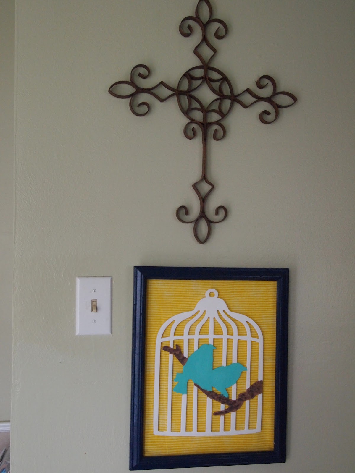 You may remember this big guy from my little birdie wall art. Hes one of my favies too. Im pretty sure hes an outdoor cross but I like him indoors. And he likes it indoors so he stays.
