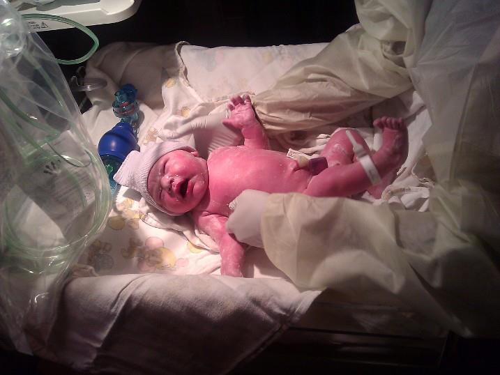 At about 34wks, around July….27th, I woke up one morning and just didn’t feel good. I was having mild contractions, super over the top tired, very upset tummy…just felt off. I called the doctor and they agreed to see me later that day. I dropped the 2yr old off at the in laws and struck out to the doctor…70 miles away, by myself. By the time I made it to the doctor my stomach was so upset and the contractions were getting worse. The doctor on call saw me and said “I am sorry honey, but I am sending you to triage…you need to be on the monitor”. Not what I wanted to hear, but I felt awful. So across the street I went to the Women’s Pavillion and it was a packed house. I sat in the waiting room to be seen for over an hour…alone! Finally I waddled back to the row of curtain rooms, hooked my hard as a rock belly to the monitor and I watched the contractions rise and fall every 2 mins. I was hooked up about 10mins and the nurse came in to tell me they felt I was in labor and I was being admitted. {I proceed to freak out}