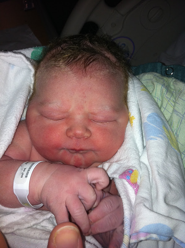I don't think I have ever seen such a chubby newborn! You definitely earned those bragging rights! Congratulations, she is beautiful! I loved reading your story. Thanks for sharing it with us! 🙂