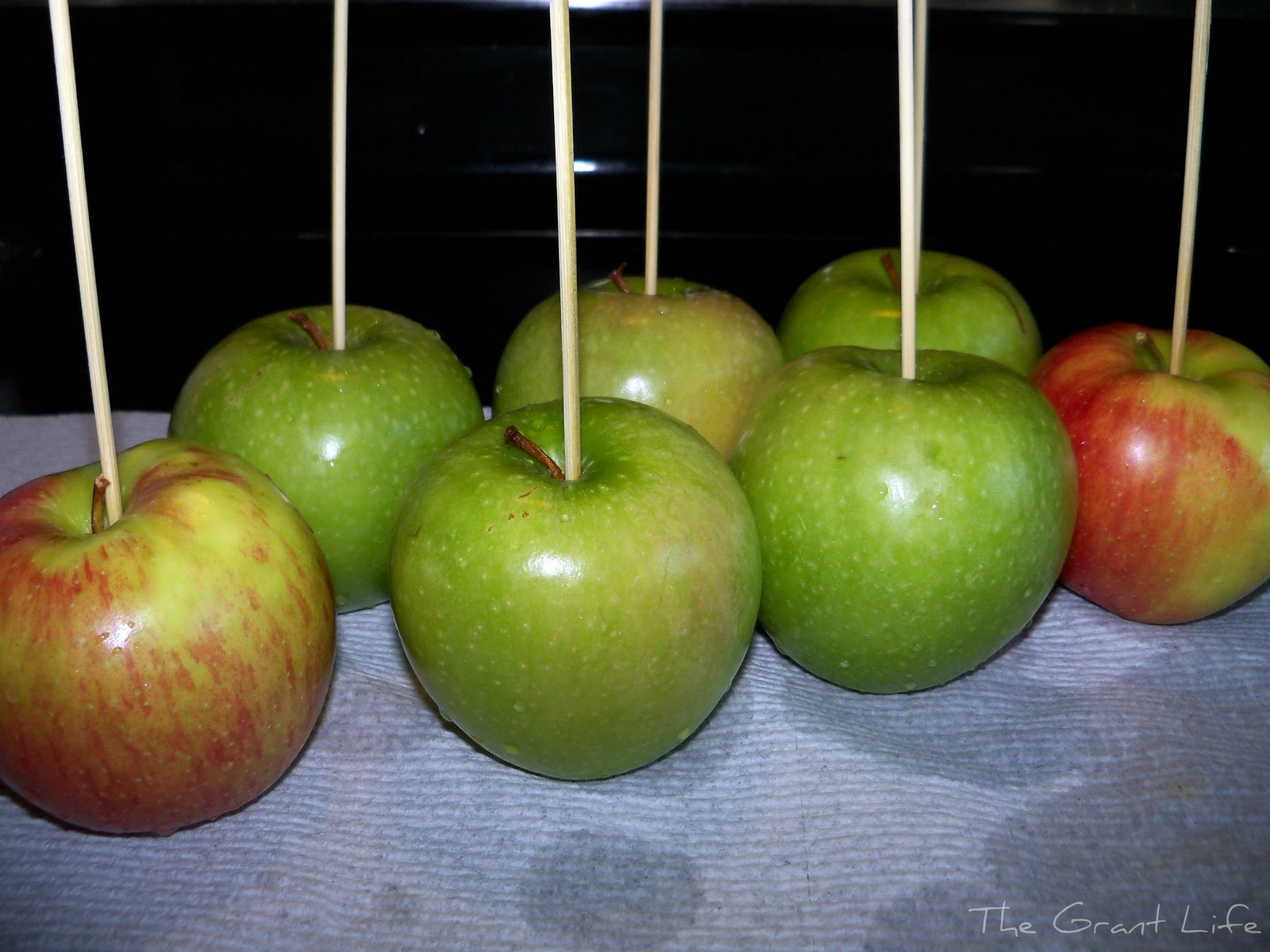 Wash your apples and put your stick in the center.