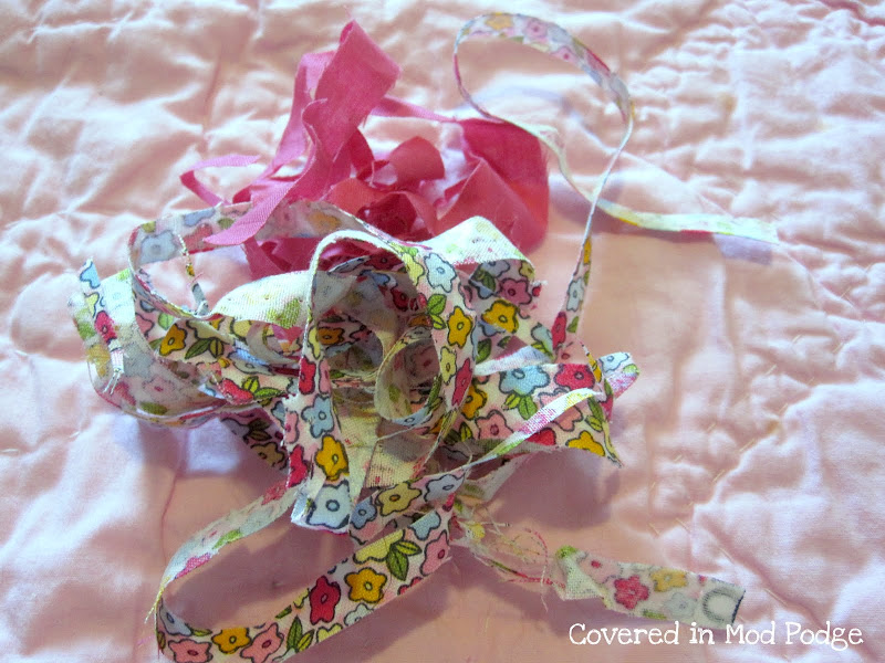 I used scraps from squaring up the blanket to wrap it all up!