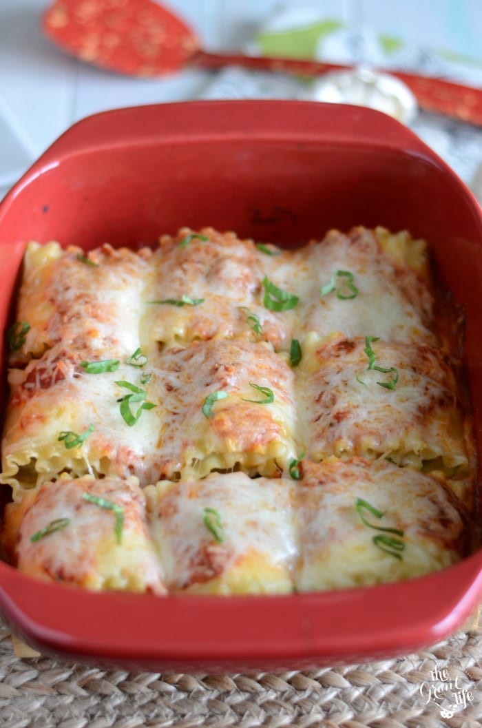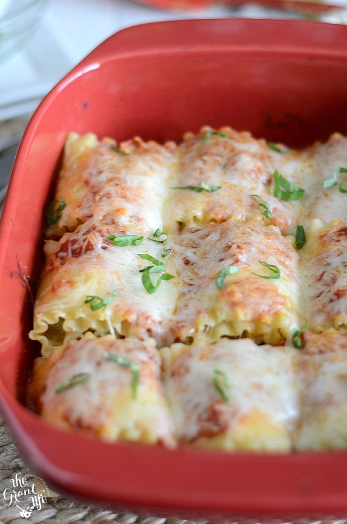Now I can’t say this recipe is “healthy” because the roll-ups are stuffed with ricotta, but it is better for you then regular lasagna. There are less noodles but it is just as filling. And the flavor? Out of this world good. Perfect for a quick weeknight dinner. Or if you want to impress friends or family. They will think you spent a lot of time prepping and cooking when it reality it took you a little over half an hour to put together.
