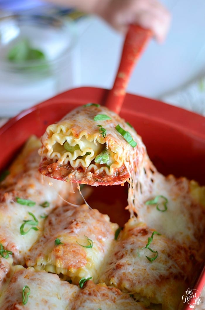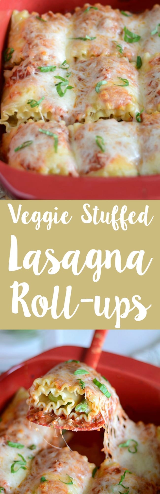 These lasagna roll-ups are filled with veggies, ricotta and Mozzarella. Covered in melty cheese and ready just in time for dinner.