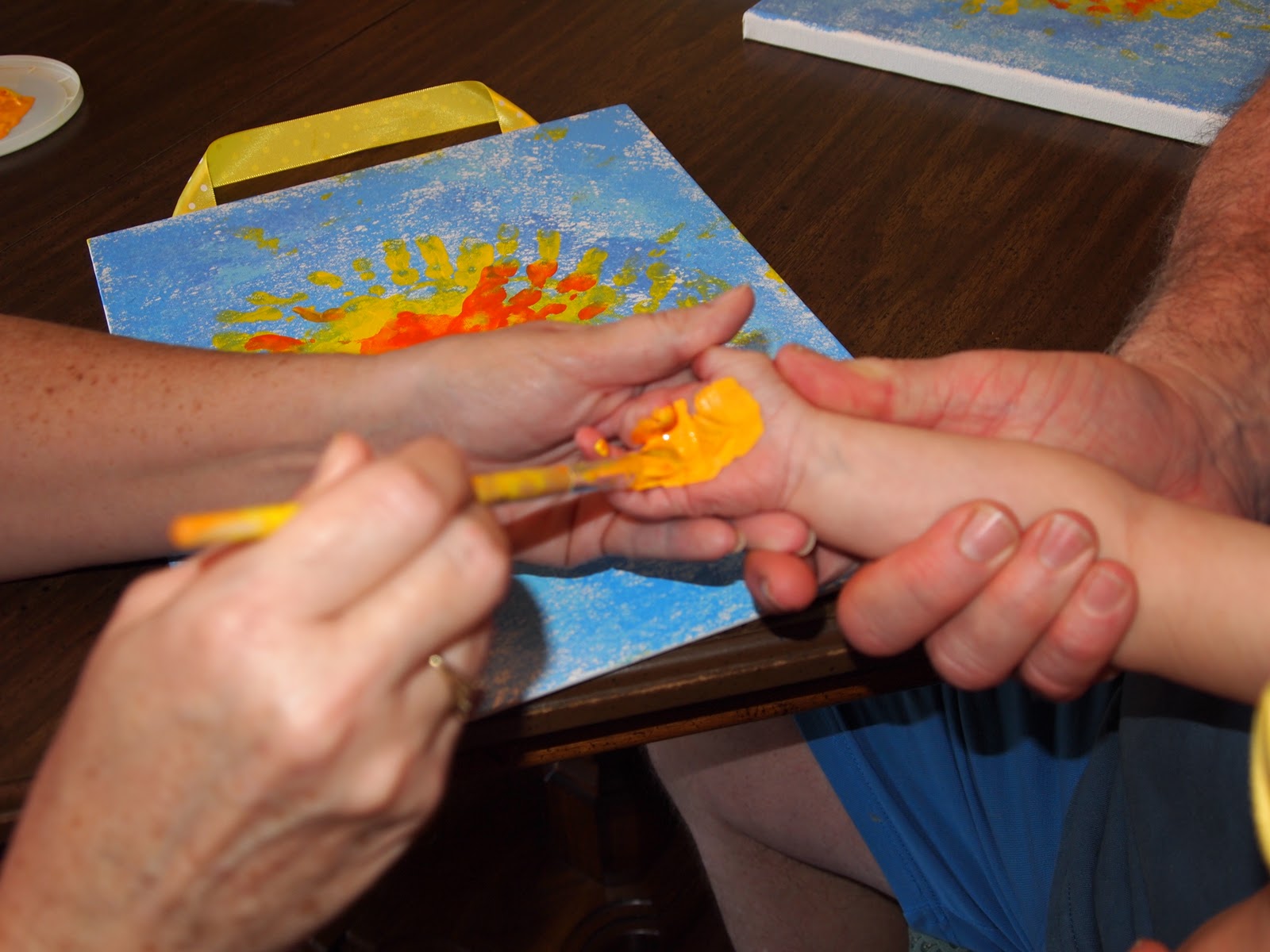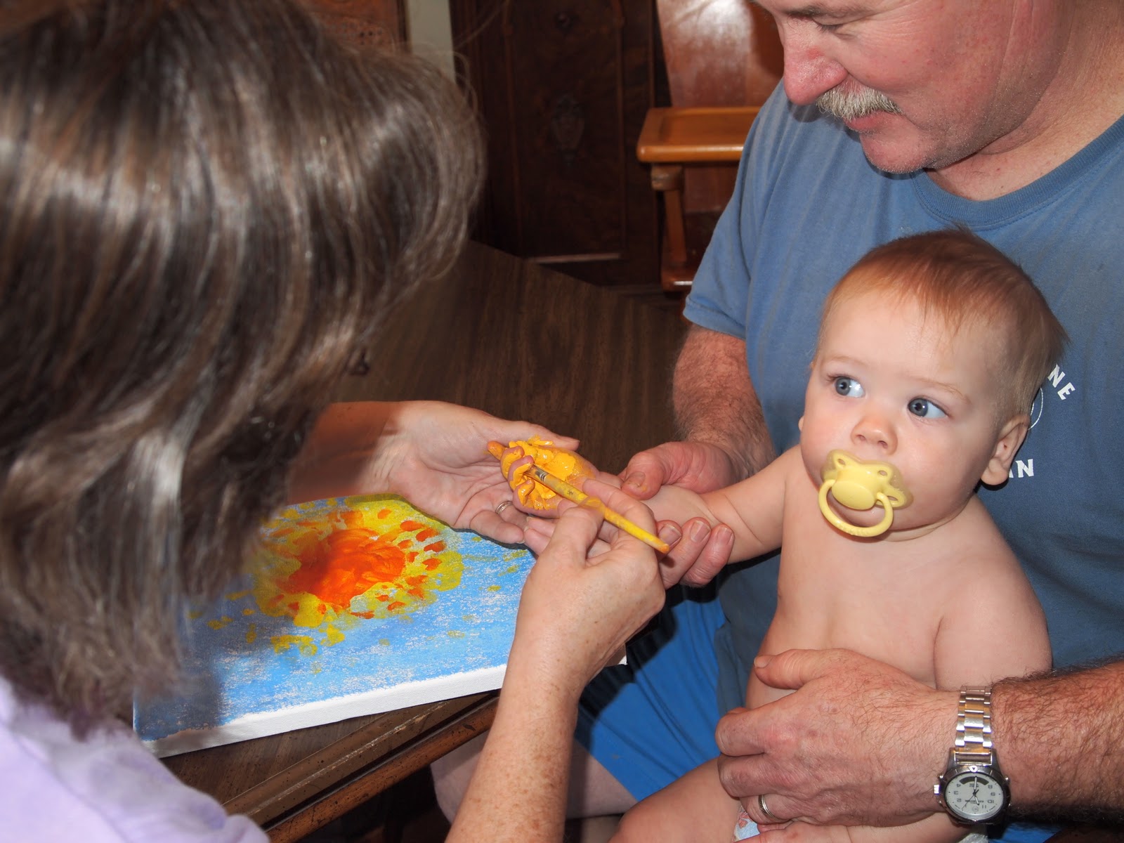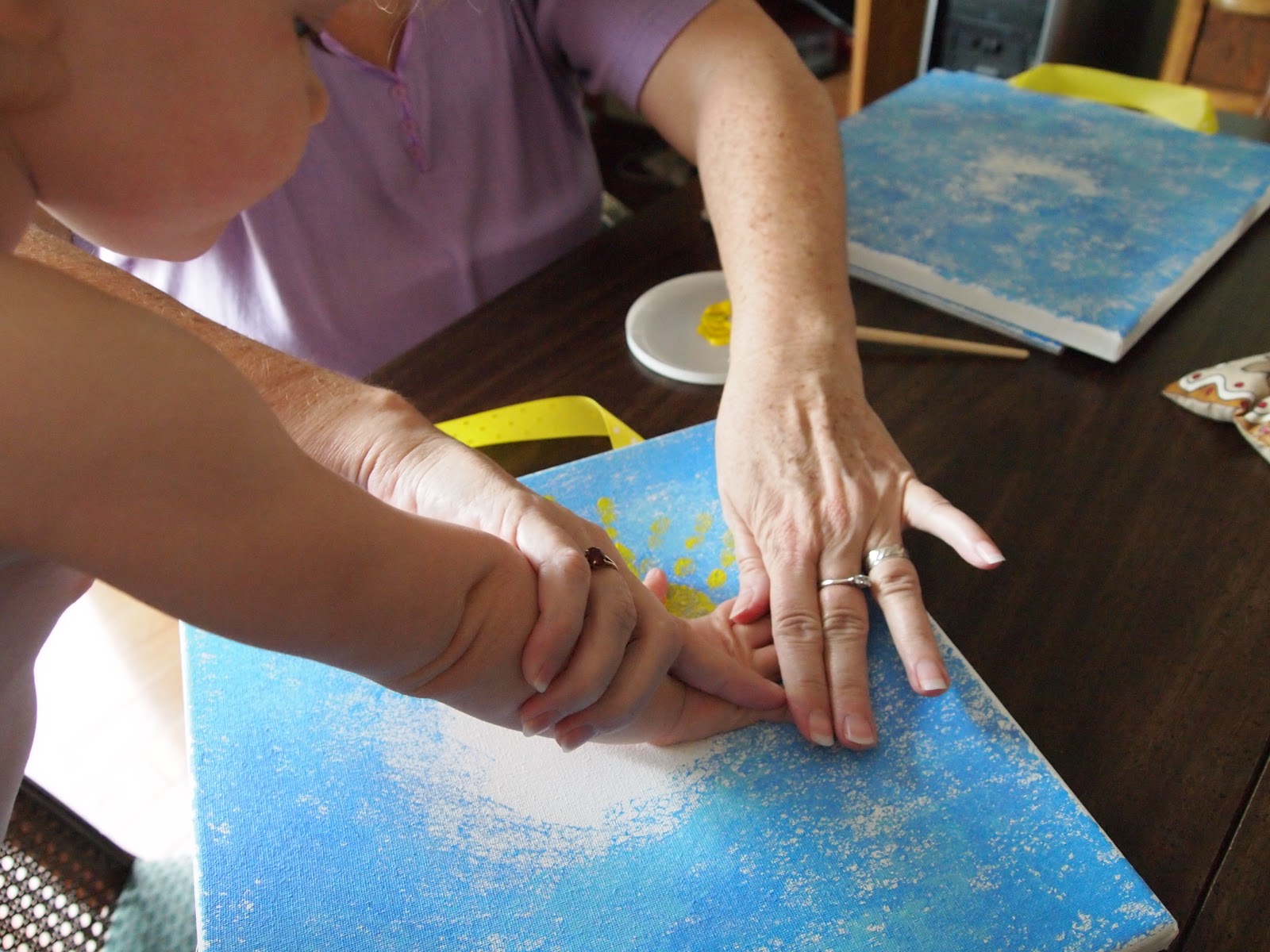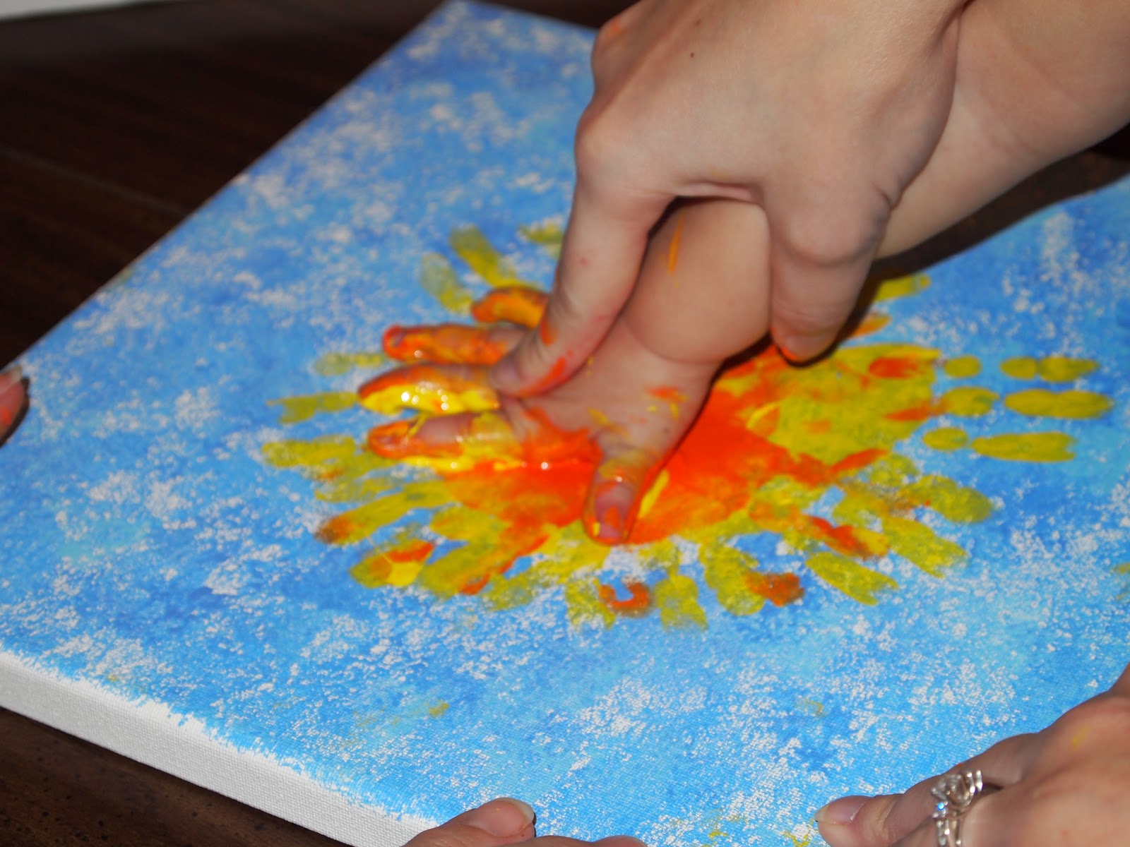 Ryley liked painting her own hands. We quickly moved from the canvas to plain paper because she really enjoyed making handprints.