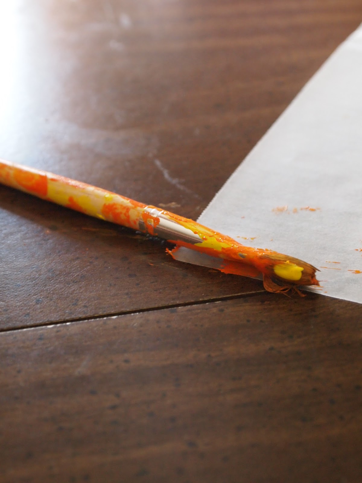 After the orange was dried we made a lighter yellowy orange to put on top.